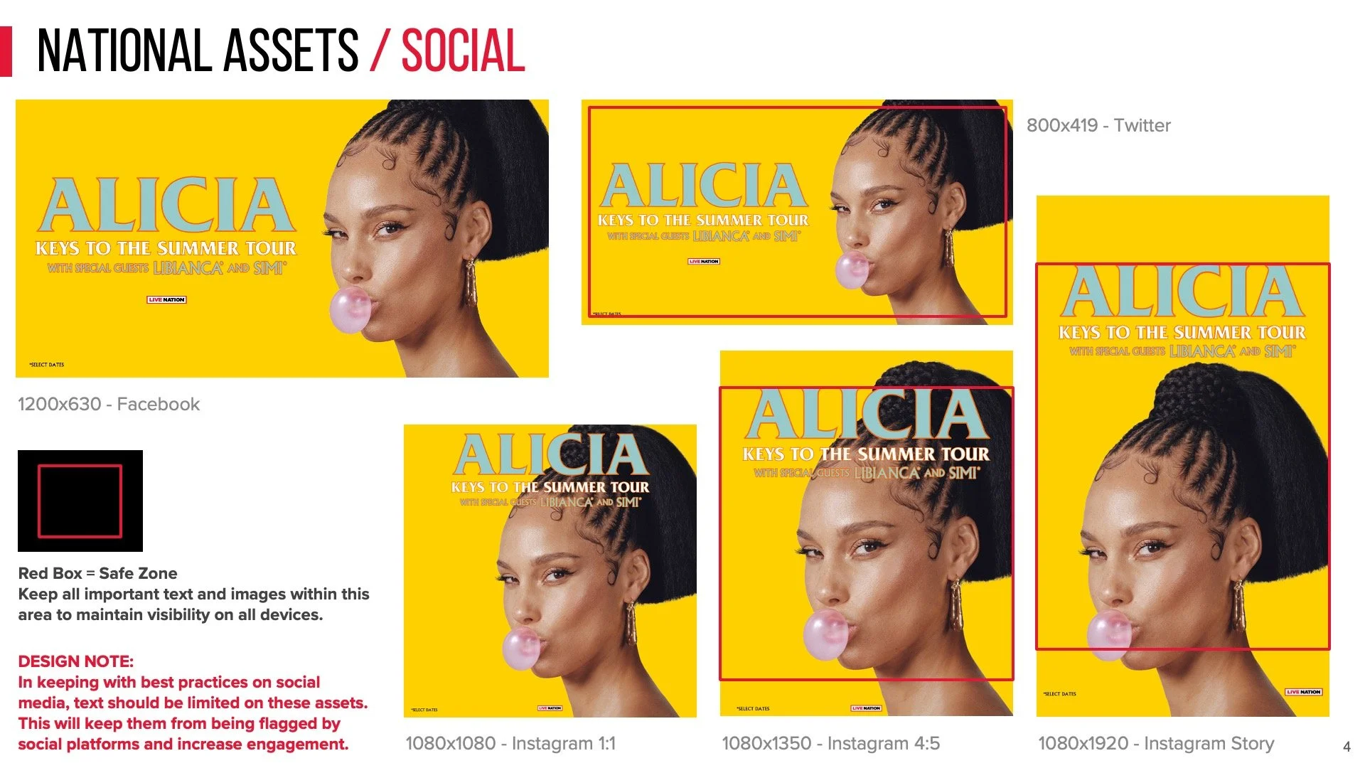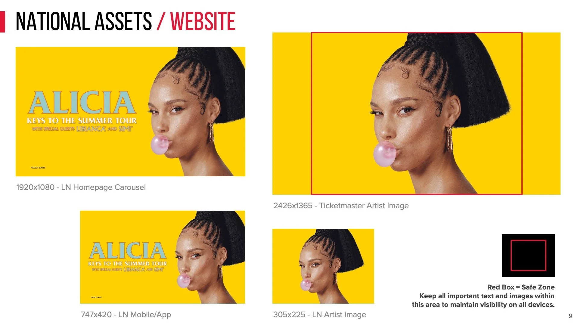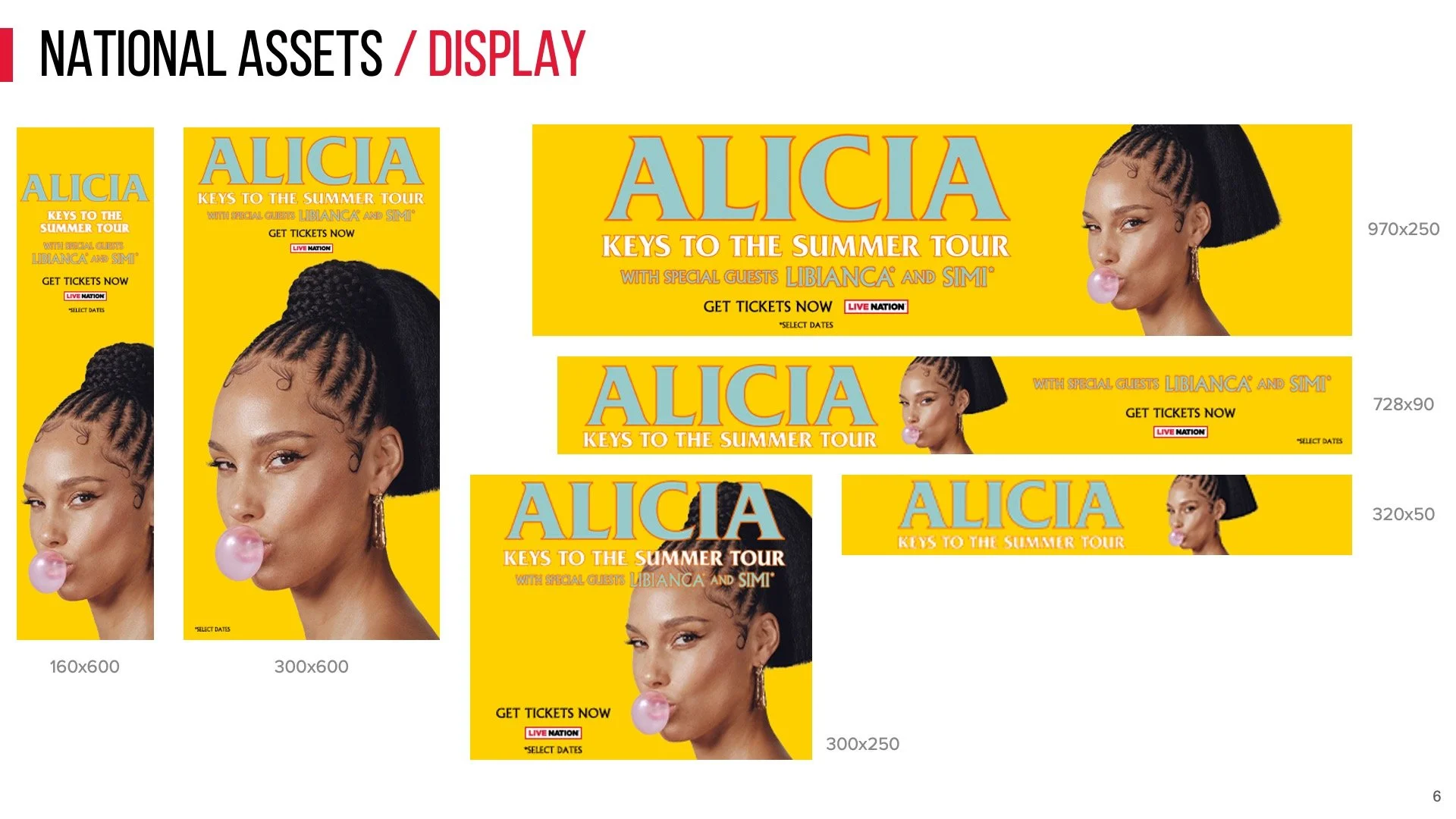 Style guide of approved layouts for all digital marketing assets for Alicia Keys’s national concert tour.