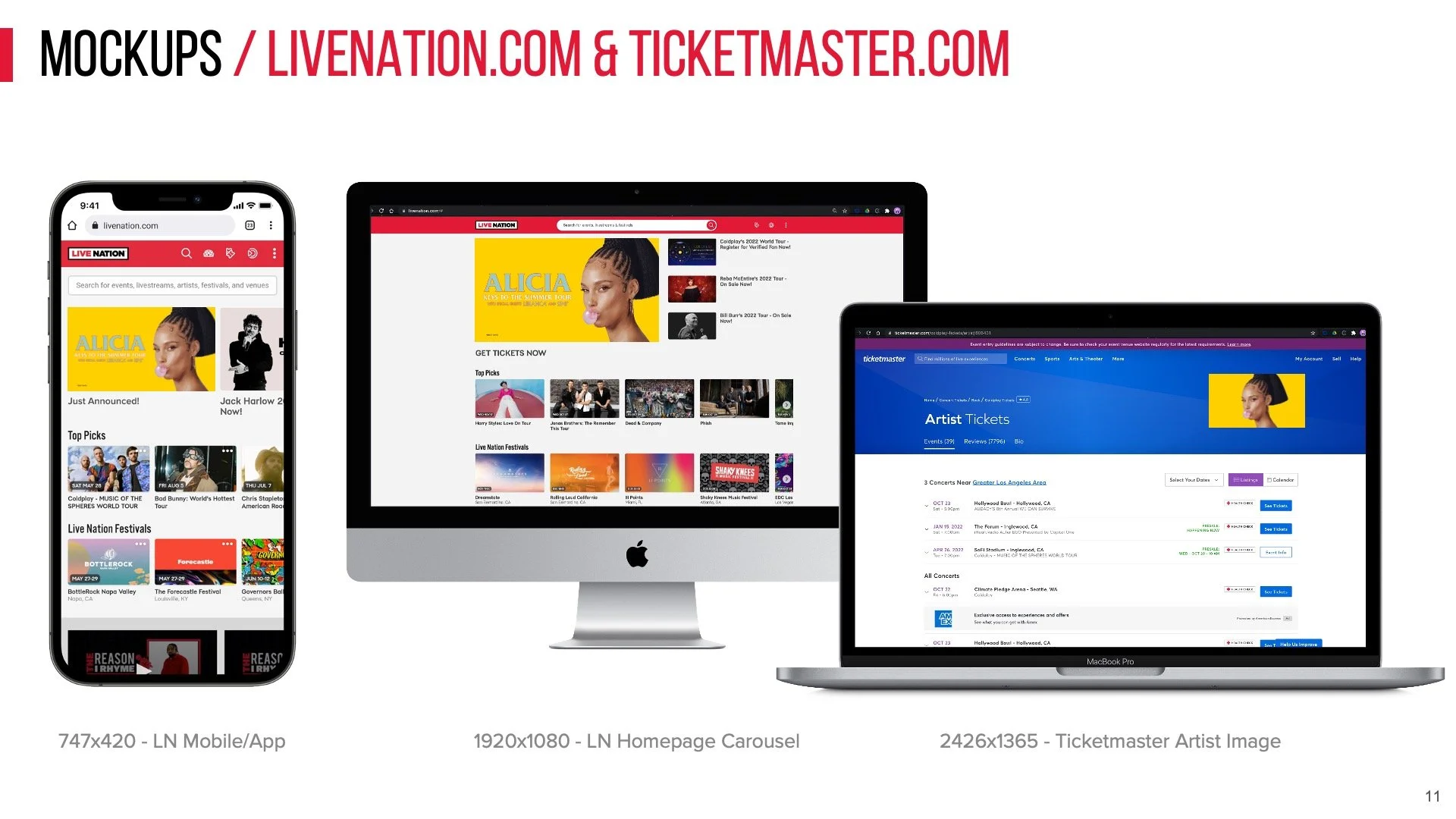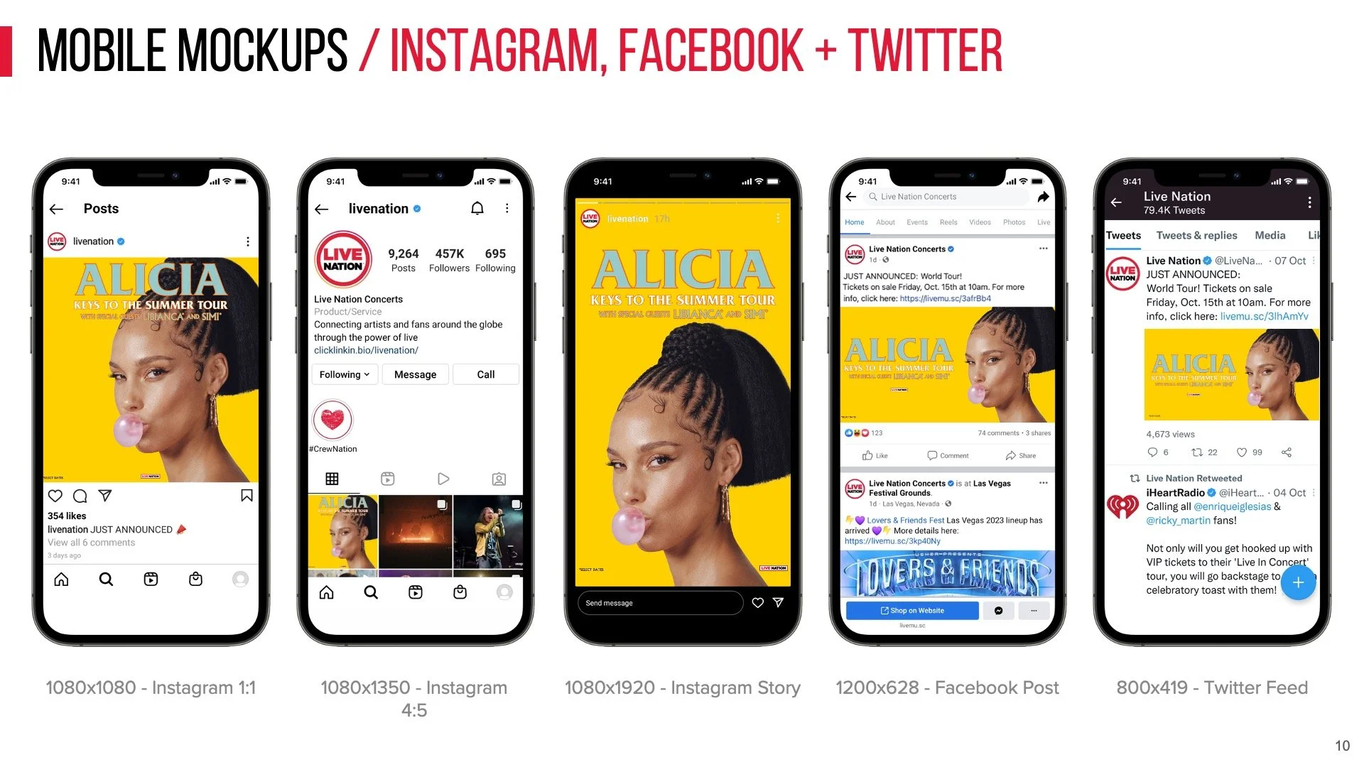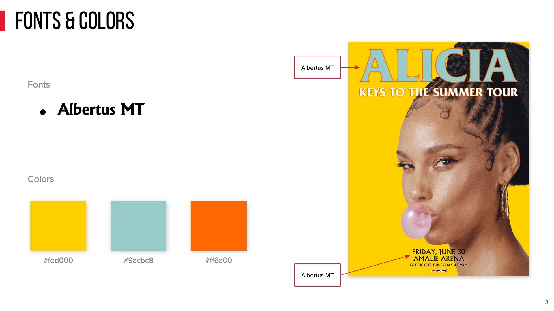 Style guide of approved layouts for all digital marketing assets for Alicia Keys’s national concert tour.